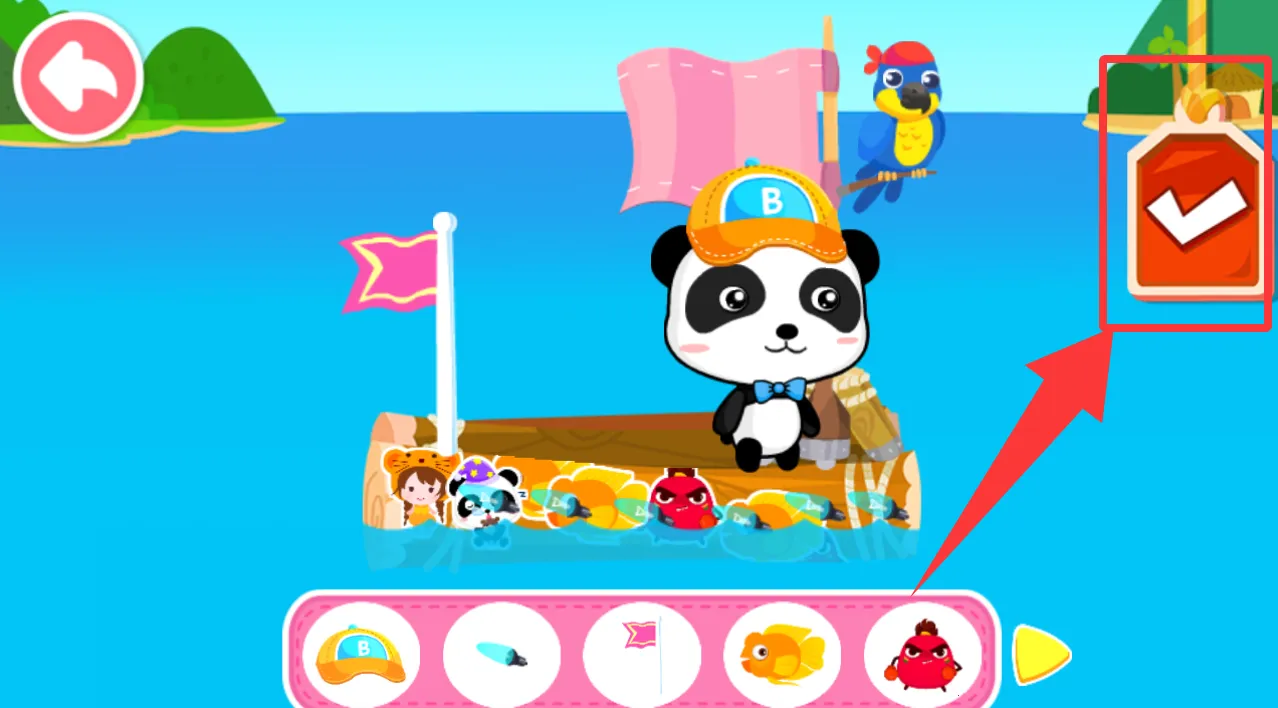 1、进入游戏点击下面的金鱼移动到船的侧面来装饰。